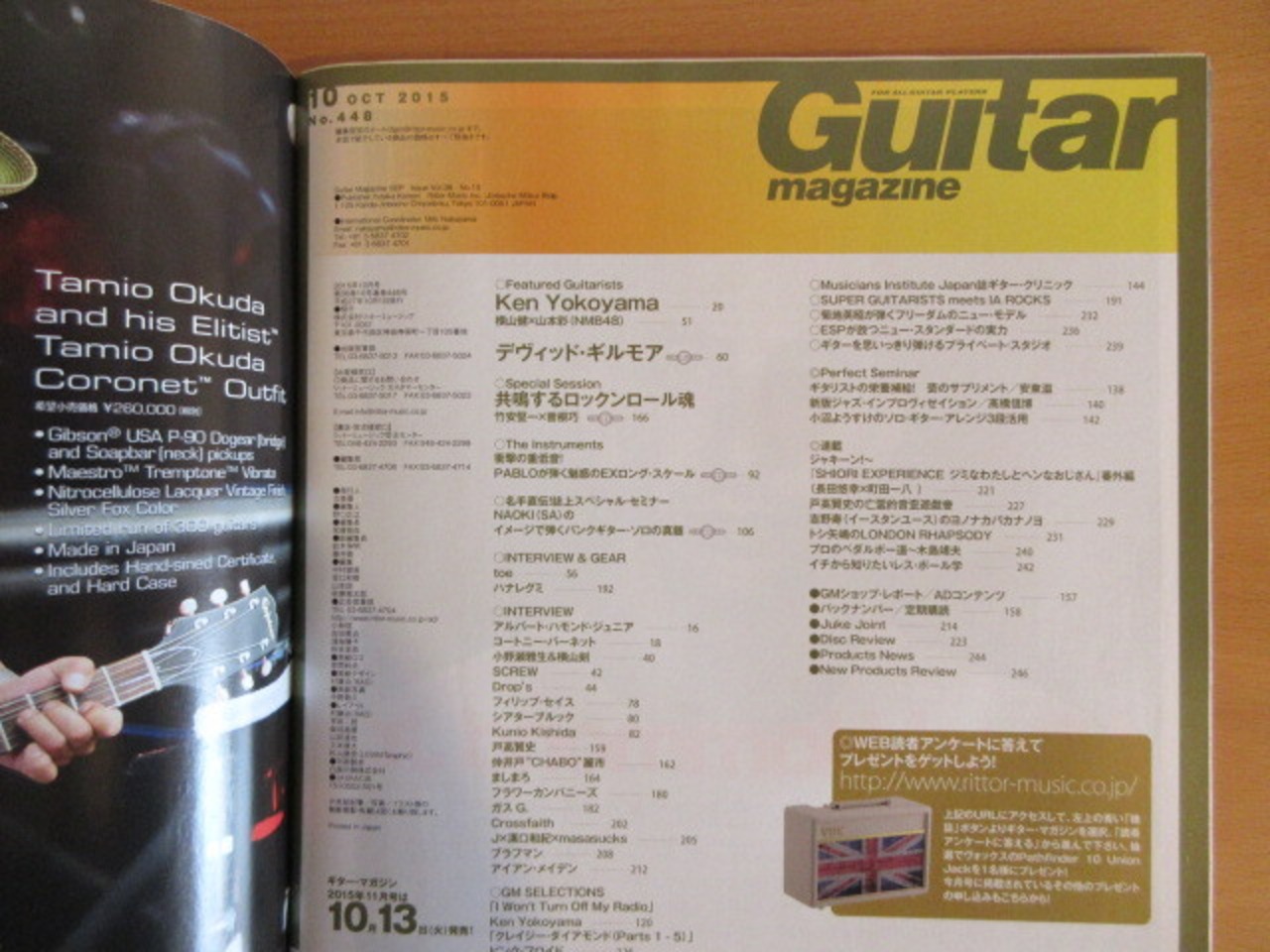 『Guitar magazine 2015年・10月号』 発行:リットーミュージック